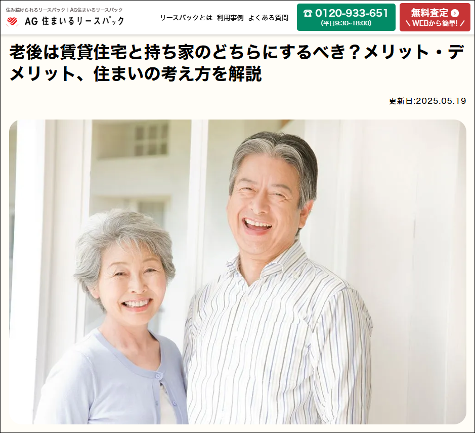 安心して住み続けられるサービスを提供するAG住まいるリースバック様の記事監修をさせて頂きました。
